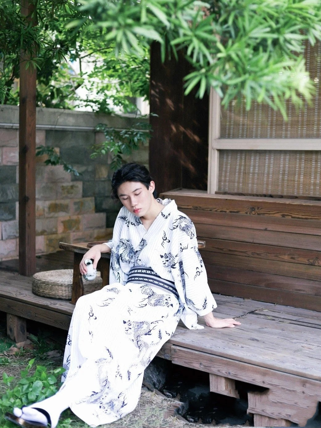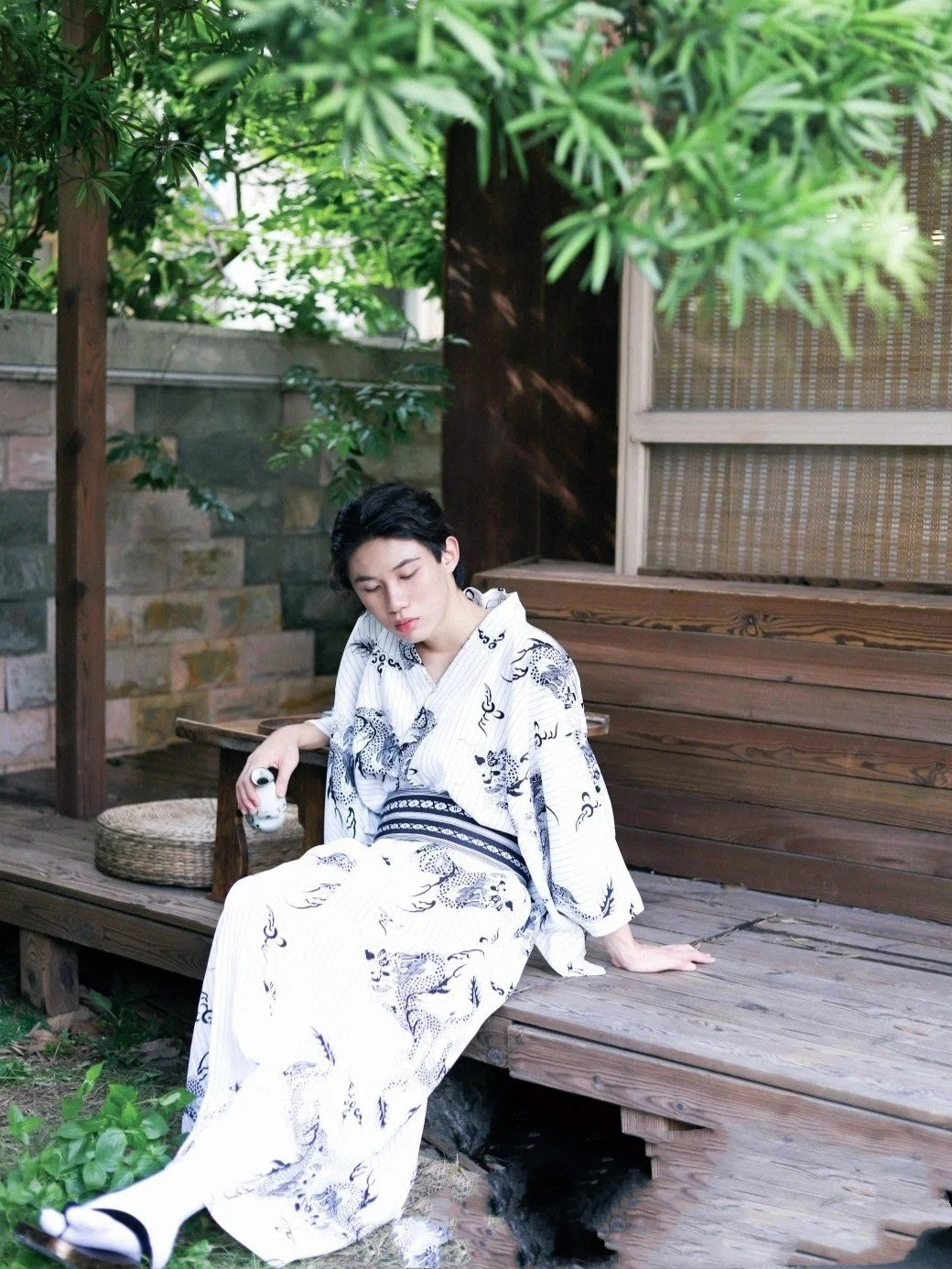 Japanese Men's Traditional Formal Wear Kimono Suit Gentleman Modified Outer Wear With Waist Seal