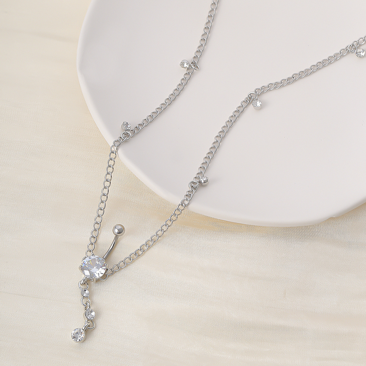Sexy Minimalist Body Chains Human Body Perforated Zircon Navel Stud