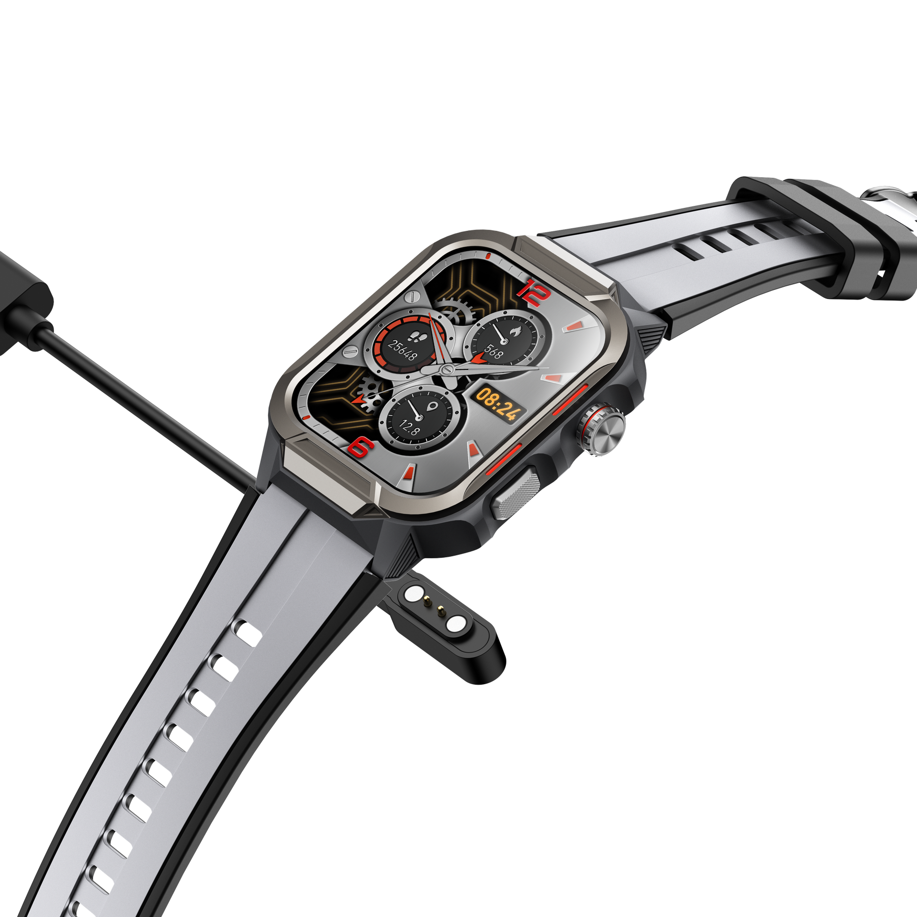 The GTS9 Smart Watch boasts a rugged design and a 1.96" colorful screen. It offers ultra-long battery life, 100+ sport modes, 3ATM waterproofing, health monitoring, and smart assistant features.